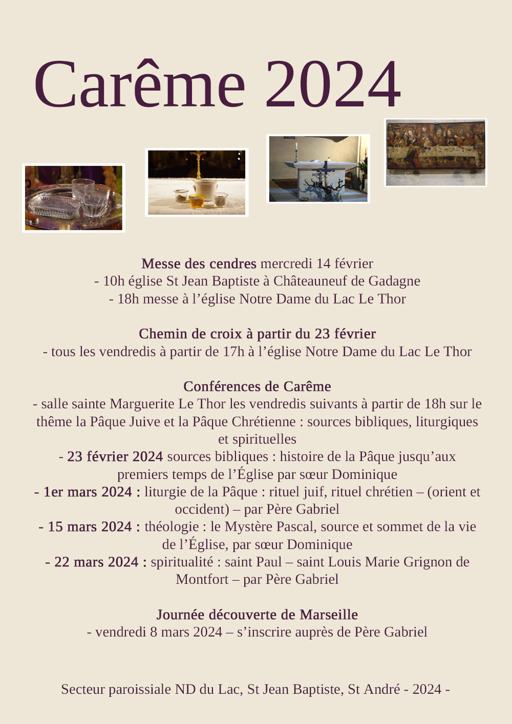 - vendredi 8 mars 2024 – s’inscrire auprès de Père Gabriel