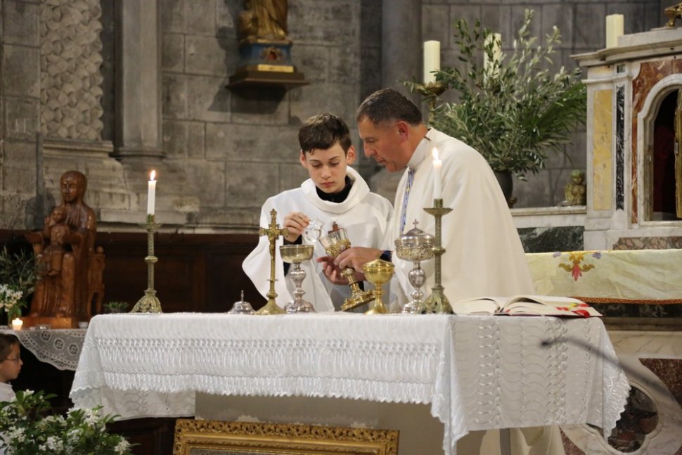 Puis après la messe, quand notre Seigneur a reposé à l’endroit prévu pour l’adoration, celles et ceux qui le pouvaient ont pu l’adorer pendant une heure, cette heure sainte au cours de laquelle Jésus a prié et affronté l’épreuve de la profonde angoisse en voyant les péchés du monde défiler sous ses yeux à Gethsémani.