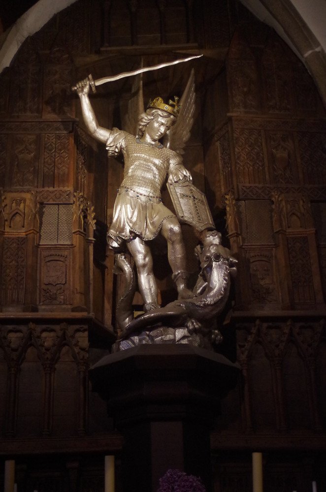 La bataille céleste à laquelle on fait référence avec saint Michel, se retrouve notamment dans le Livre de l’Apocalypse (Apocalypse 12:7-9) ? C’est un conflit fondamental entre les forces du bien et du mal, dirigées respectivement par l’Archange Michel et Satan.