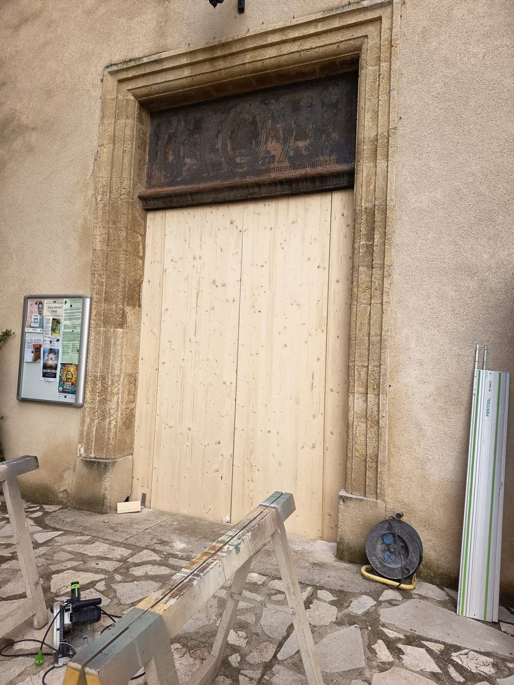 Démontage de la porte de l’église - Châteauneuf de Gadagne 5 novembre 2025 Démontage et enlèvement de la porte de l’église de Châteauneuf de Gadagne par l’ébéniste le jeudi 23 octobre, projet soutenu par la mairie et la fondation du patrimoine.