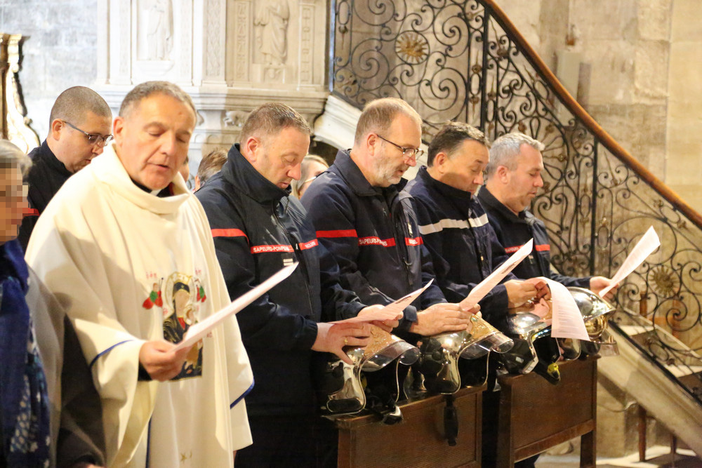 à l’église Notre Dame du Lac au Thor en présence des pompiers de la ville réunis pour célébrer leur sainte patronne, sainte Barbe, que nous avions fêtée quelques jours plus tôt.