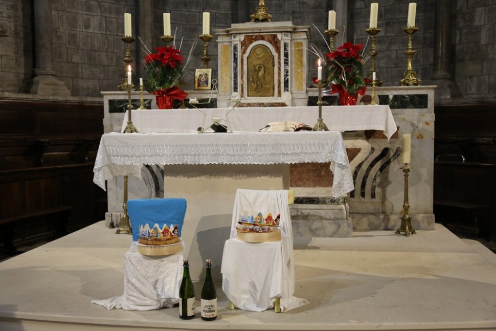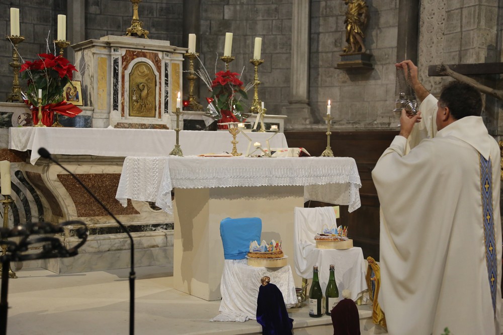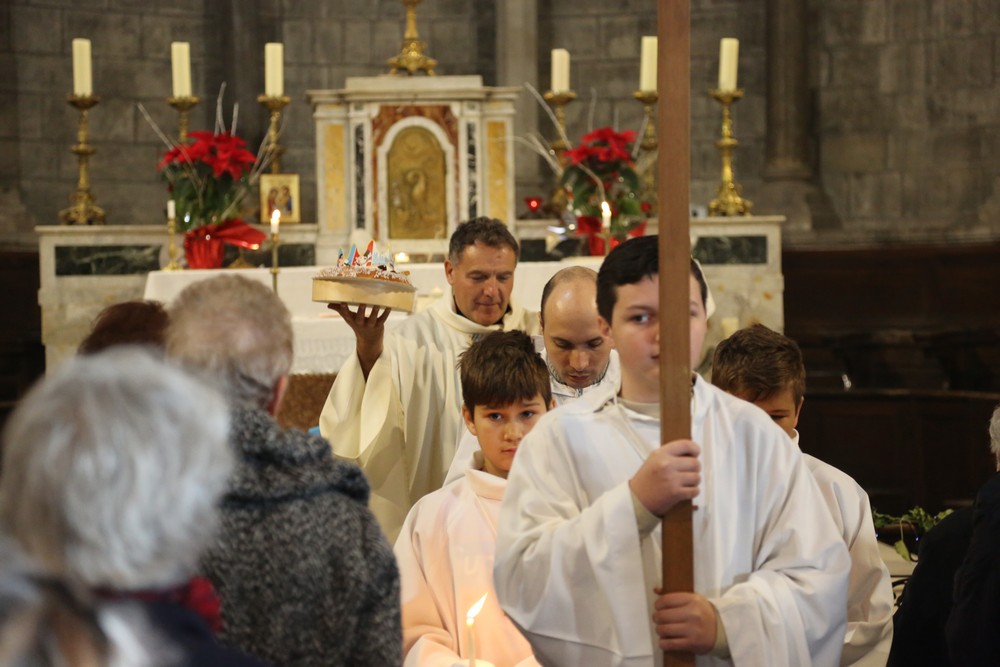 La messe de l’Epiphanie à 11h00 au Thor a été célébrée par le Père Gabriel qui a béni les galettes et qui est allé, en procession avec les enfants, déposer les rois-mages dans la crèche.