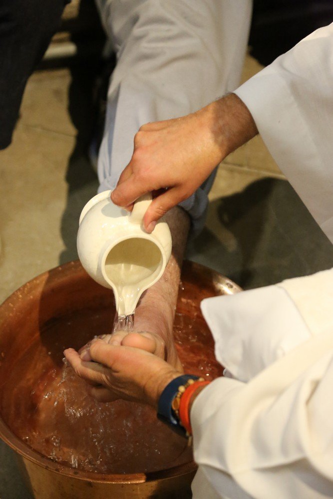 Jésus lave les pieds et non la tête comme le lui demande Pierre, parce que les pieds sont le symbole de la communion avec la Création, foulant la terre d’où nous sommes tirés et où nous reviendrons ; parce que les pieds sont aussi le symbole de la Mission, de la Marche du disciple du Christ, lui-même en route vers son Père, Notre Père, vers le Royaume ; parce que les pieds sont aussi symbole d’un amour plus fort que le péché et la mort, de l’Amour fou de Dieu pour l’humanité, comparable seulement à l’amour communion des époux sur la terre…