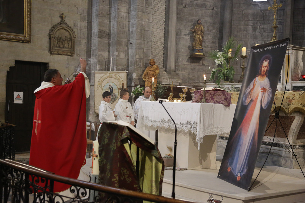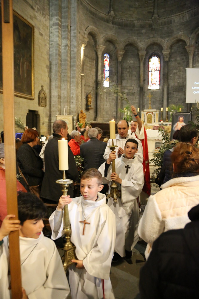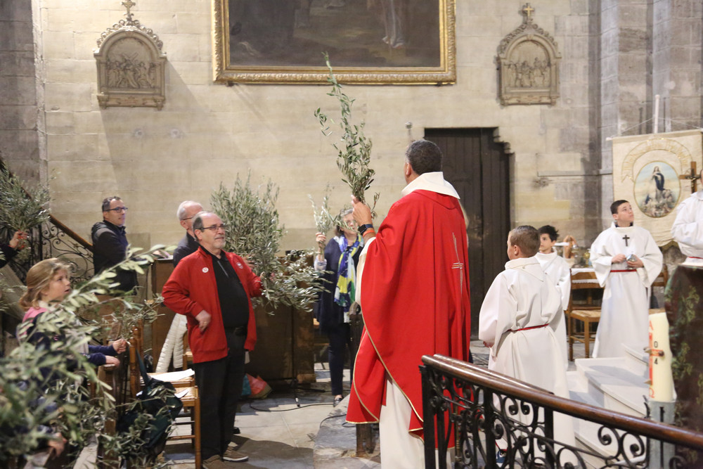 La pluie n’a pas permis que les rameaux soient bénis à l’extérieur et que la procession puisse se faire. Mais ils ont été bénis dans l’église dans la joie de cette fête qui rappelle l’entrée de Jésus à Jérusalem et qui nous fait entrer dans la semaine sainte.