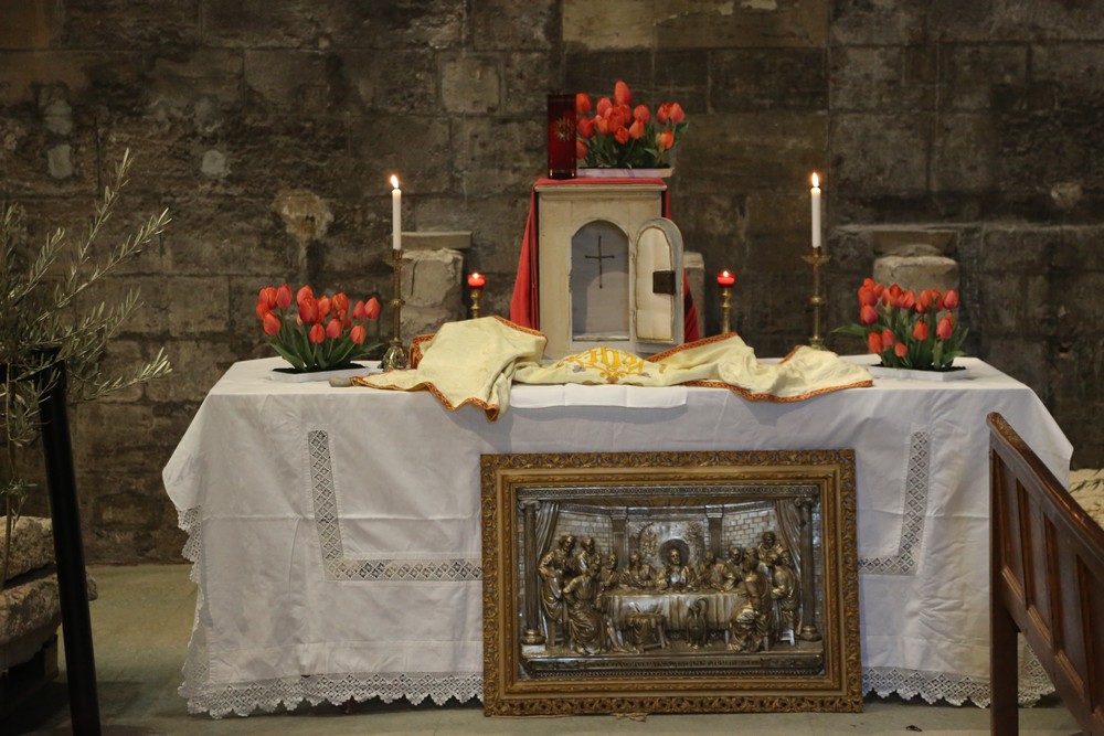 Jeudi 6 avril, nous avons célébré la messe du jeudi saint, avec la commémoration de la sainte Cène, le départ des cloches, le lavement des pieds, la procession pour pouvoir déposer le saint Sacrement pour l’heure sainte, une heure de prière avec Jésus et enfin la mise à nue de l’autel et du chœur, en signe de deuil puisque notre Seigneur est en train de donner Sa vie pour nous.