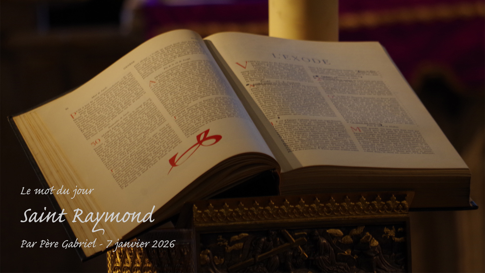 Donc je fête une très belle fête à tous les Raymond, Raymond de Ramon que nous connaissons. Et il y en a de magnifiques, qu’ils soient bénis. En ce jour, en ce mercredi 7 janvier, au milieu de cette semaine, je vous invite avec moi à faire un signe de croix au nom du Père et du Fils et du Saint-Esprit.