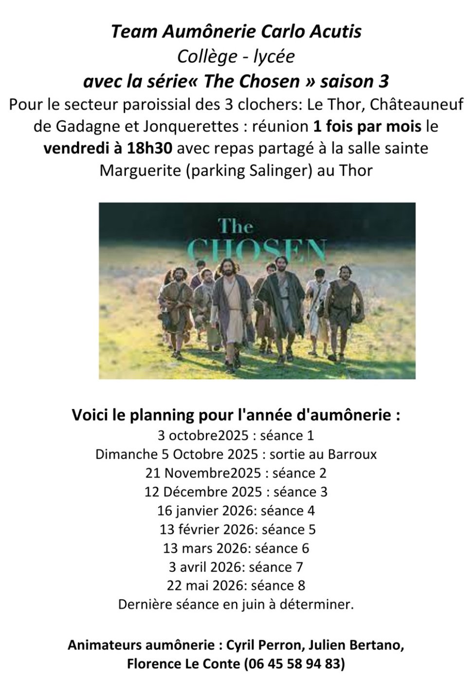 Team aumônerie Carlo Acutis - planning 2025 / 2026 17 septembre 2025 Cliquer sur l’image pour afficher plein écran